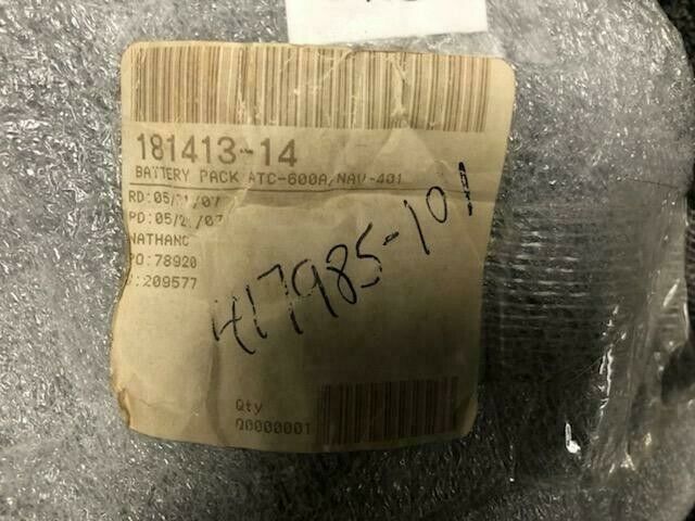 BATTERY PACK ATC-600A/NAV 401 P/N 181413-14 NS COND # 12085ALL SALES FINAL, NO RETURNSRUSH ORDER CAN BE TAKEN ON THIS ITEMSAME DAY SHIPPING FOR ORDER PLACED BEFORE 2PM EST; YOU WILL RECEIVE AFINAL INVOICE FROM “STRIPE” TO MAKE YOUR PAYMENT.. ANY INTERNATIONAL DUTY AND TAXES MUST BE PAID BY CUSTOMER AT TIME OF DELIVERY OF PRODUCTOVER 10 MILLION PARTS IN INVENTORY