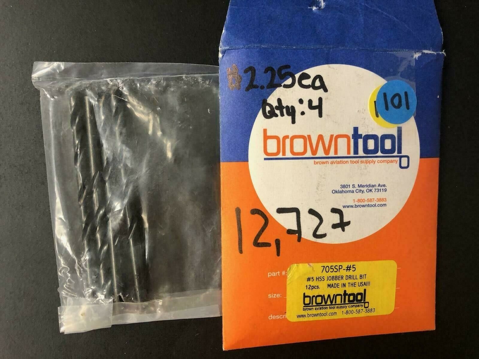 BROWNTOOL DRILL BITS P/N 705SP-#5 (LOT OF 4) NS COND # 12727 OVER 10 MILLION PARTS IN INVENTORYALL SALES FINAL, NO RETURNS, UNLESS AUTHORIZEDRUSH ORDER TAKEN ON THIS ITEM SAME DAY SHIPPING FOR ORDER PLACED BEFORE 2PM EST, AFTER 2PM EST NEXT DAY, MONDAY-FRIDAYTRACKING NUMBERS WILL APPEAR THAT DAY ON THE EBAY SITE PRODUCTS MUST BE PAID IN FULL ANY INTERNATIONAL DUTY AND TAXES MUST BE PAID BY CUSTOMERAT TIME OF DELIVERY OF PRODUCTEbay Payments: You will be receiving a link to make your payment from “EBAY” shortly to the email on file with ebay. Products will ship after payment received. If for some reason you don’t see your invoice within 30 minutes of purchase, please check your SPAM BOX thank you for shopping at shop aviation store. Shopaviatonstore com 954 319 0936