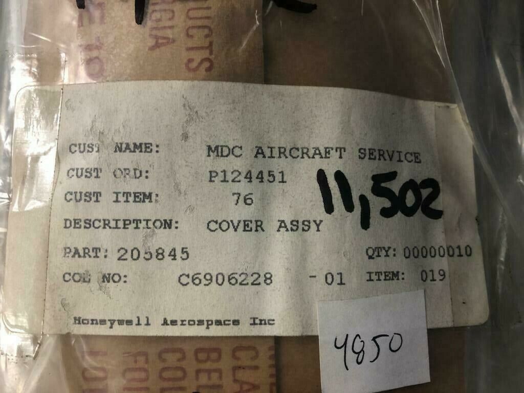 HONEYWELL COVER ASSY P/N 205845 NE COND # 11502 (10, UNITS AVAIL) OVER 10 MILLION PARTS IN INVENTORYALL SALES FINAL, NO RETURNS, UNLESS AUTHORIZEDRUSH ORDER TAKEN ON THIS ITEM SAME DAY SHIPPING FOR ORDER PLACED BEFORE 2PM EST, AFTER 2PM EST NEXT DAY, MONDAY-FRIDAYTRACKING NUMBERS WILL APPEAR THAT DAY ON THE EBAY SITE PRODUCTS MUST BE PAID IN FULL ANY INTERNATIONAL DUTY AND TAXES MUST BE PAID BY CUSTOMERAT TIME OF DELIVERY OF PRODUCTEbay Payments: You will be receiving a link to make your payment from “EBAY” shortly to the email on file with ebay. Products will ship after payment received. If for some reason you don’t see your invoice within 30 minutes of purchase, please check your SPAM BOX thank you for shopping at shop aviation store. Shopaviatonstore com 954 319 0936