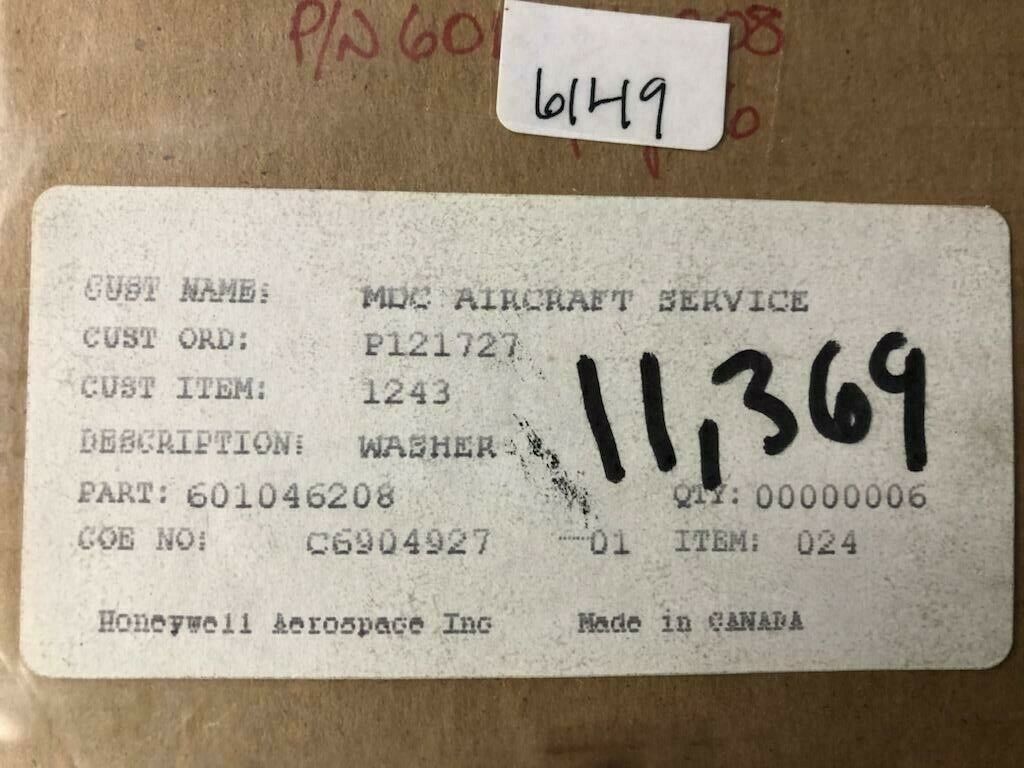 HONEYWELL WASHER P/N 601046208 NS COND #  11369 (6, UNITS AVAIL ) OVER 10 MILLION PARTS IN INVENTORYALL SALES FINAL, NO RETURNS, UNLESS AUTHORIZEDRUSH ORDER TAKEN ON THIS ITEM SAME DAY SHIPPING FOR ORDER PLACED BEFORE 2PM EST, AFTER 2PM EST NEXT DAY, MONDAY-FRIDAYTRACKING NUMBERS WILL APPEAR THAT DAY ON THE EBAY SITE PRODUCTS MUST BE PAID IN FULL ANY INTERNATIONAL DUTY AND TAXES MUST BE PAID BY CUSTOMERAT TIME OF DELIVERY OF PRODUCTEbay Payments:  You will be receiving a link to make your payment from “EBAY” shortly to the email on file with ebay. Products will ship after payment received. If for some reason you don’t see your invoice within 30 minutes of purchase, please check your SPAM BOX  thank you for shopping at shop aviation store.   Shopaviatonstore com 954  319   0936