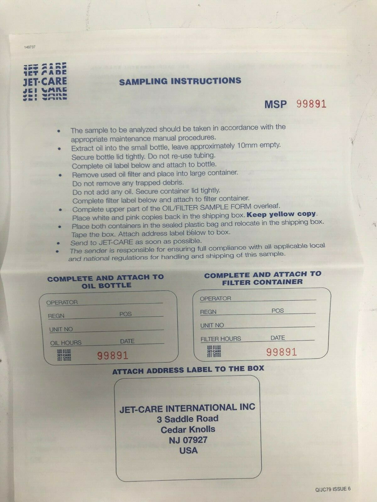 SOAP KIT  5T3G JCL-731 OIL ANALYSIS TFE731 NE INV# 10856 OVER 10 MILLION PARTS IN INVENTORY ALL SALES FINAL, NO RETURNS, UNLESS AUTHORIZED RUSH ORDER TAKEN ON THIS ITEM   SAME DAY SHIPPING FOR ORDER PLACED BEFORE 2PM EST, AFTER 2PM EST NEXT DAY, MONDAY-FRIDAY TRACKING NUMBERS WILL APPEAR THAT DAY PRODUCTS MUST BE PAID IN FULL   ANY INTERNATIONAL DUTY AND TAXES MUST BE PAID BY CUSTOMER; AT TIME OF DELIVERY OF PRODUCT OVERSEAS BUYERS ARE SUBJECTED TO THE ADVERTISING COST    INCURRED BY SENDING TO A USA FREIGHT COMPANY   Ebay Payments:  Products will ship after payment received. If for some reason you don’t see your invoice within 30 minutes of purchase, please check your SPAM BOX  thank you for shopping at shop aviation store.  Shopaviatonstore com  954  319   0936