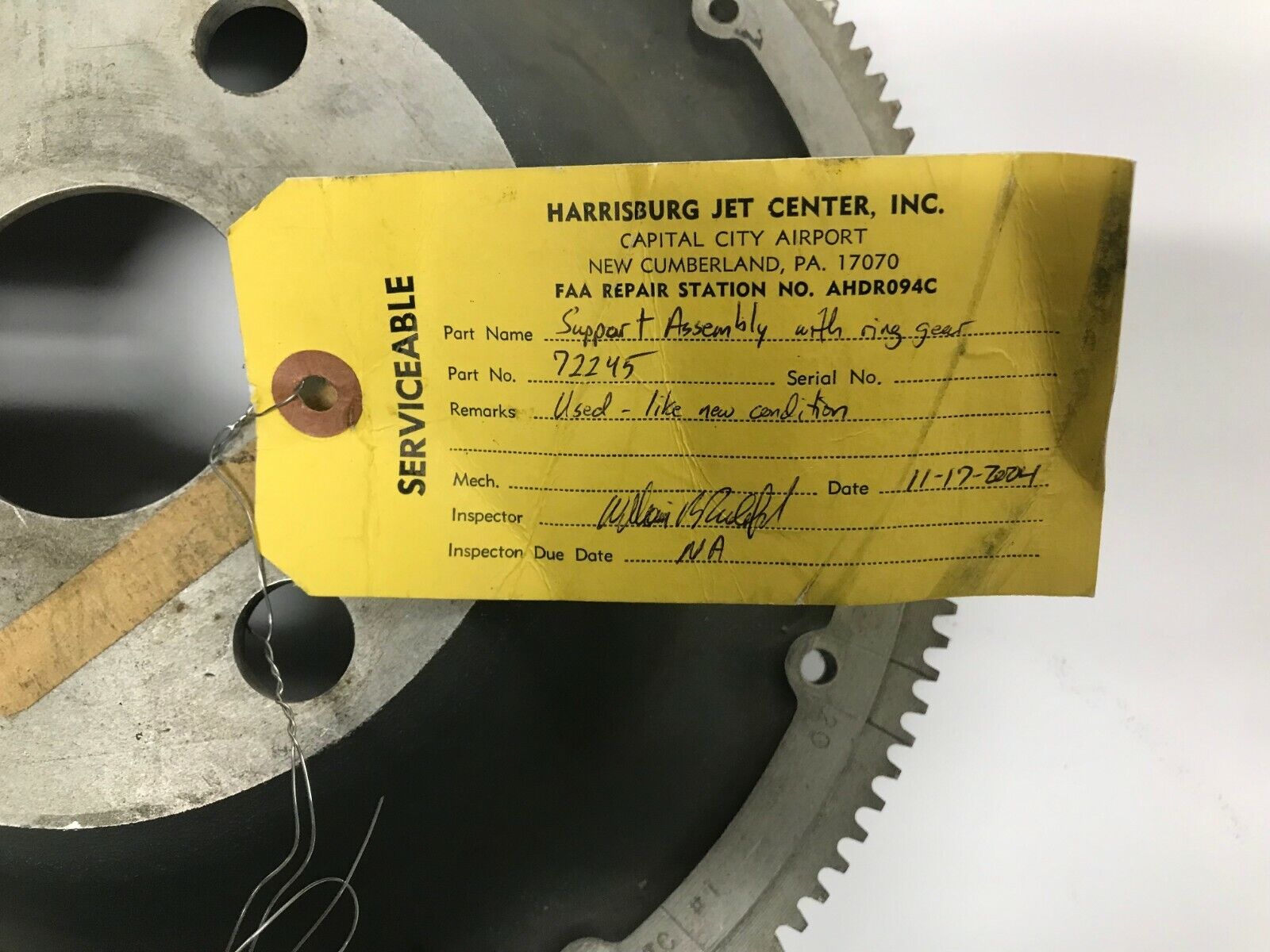 LYCOMING PN 72245 Support Assembly-Starter Ring Gear INV# 11813ALL SALES FINAL, NO RETURNSRUSH ORDER TAKEN ON THIS ITEMSAME DAY SHIPPING FOR ORDER PLACED BEFORE 2PM ESTFN PRODUCTS COMES WITH OEM WARRANTYOVER 10 MILLION PARTS IN INVENTORY ANY INTERNATIONAL DUTY AND TAXES MUST BE PAID BY CUSTOMER AT TIME OF DELIVERY OF PRODUCT