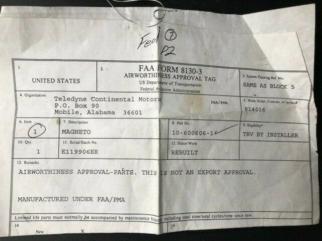 MAGENTO P/N 10-600606 REBUILT UNIT 8130-3 OUTRIGHT PURCHASE, NO CORE CHARGE # 22730/27210ALL SALES FINAL, NO RETURNSRUSH ORDER TAKEN ON THIS ITEMSAME DAY SHIPPING FOR ORDER PLACED BEFORE 2PM ESTOVER 10 MILLION PARTS IN INVENTORY ANY INTERNATIONAL DUTY AND TAXES MUST BE PAID BY CUSTOMER AT TIME OF DELIVERY OF PRODUCT