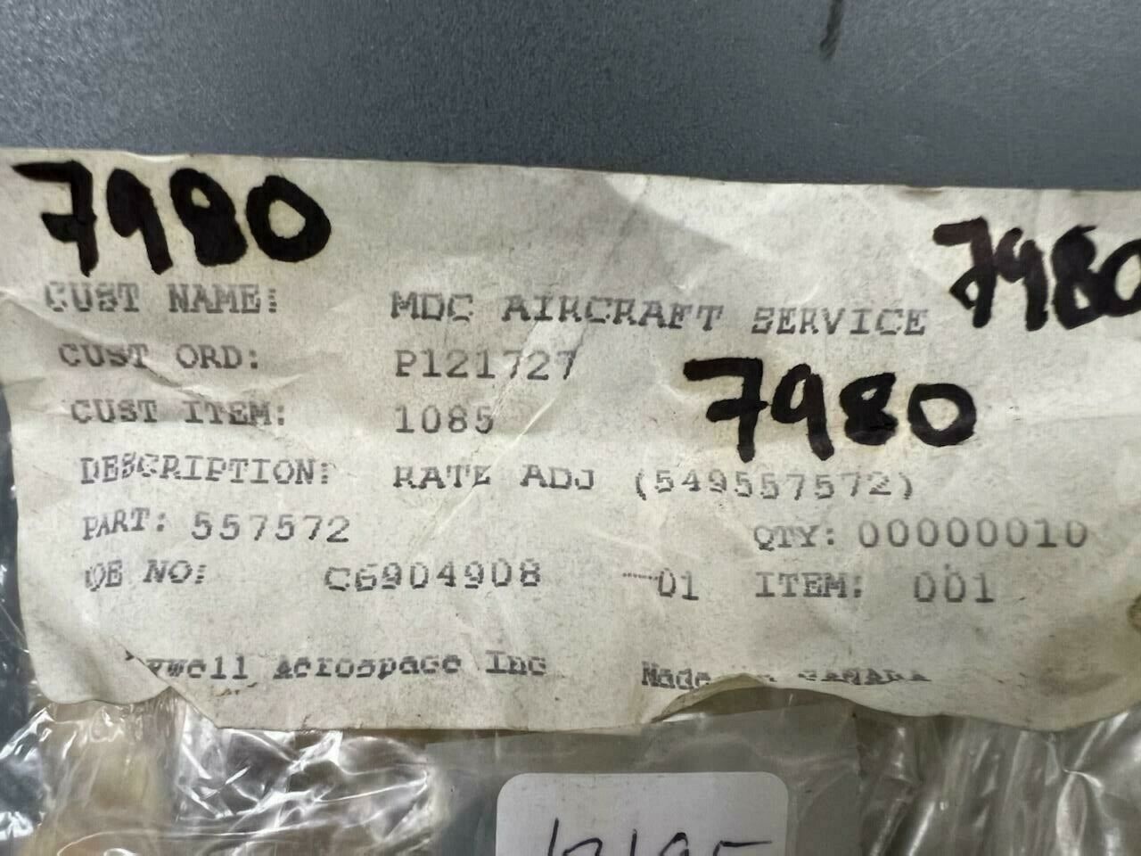 RATE ADJ ( HONEYWELL) P/N 557572 NE COND # 7980 (10) OVER 10 MILLION PARTS IN INVENTORYIN ORDER TO MAXIMIZE SPACE ON EBAY, WE REFERENCE OUR IN-HOUSE LOT NUMBER AND QTY AVAIL( ) AT END OF HEADER, AS WE HOUSE OVER 10M IN LINE ITEMS ALL SALES FINAL, NO RETURNS, UNLESS AUTHORIZEDPLEASE MAKE SURE YOU LOOK AT THE PICTURES AND DESCRIPTION BEFORE PURCHASING, THANK YOU MGT RUSH ORDER TAKEN ON THIS ITEM EMAIL MUST BE SENT PRIOR TO PAYING NOT AFTER FOR ANY RUSH ORDERS AS THERE MAY BE A SUR-CHARGE SAME DAY SHIPPING FOR ORDER PLACED BEFORE 2PM EST, AFTER 2PM EST NEXT DAY, MONDAY-FRIDAYTRACKING NUMBERS WILL APPEAR THAT DAY ON THE EBAY SITE PRODUCTS MUST BE PAID IN FULL ANY INTERNATIONAL DUTY AND TAXES MUST BE PAID BY CUSTOMERAT TIME OF DELIVERY OF PRODUCTEbay Payments: You will be receiving a link to make your payment from “EBAY” shortly to the email on file with ebay. Products will ship after payment received. If for some reason you don’t see your invoice within 30 minutes of purchase, please check your SPAM BOX thank you for shopping at shop aviation store. Shopaviatonstore com 954 319 0936 WHAT IS NS COND: ?New Surplus?A New Surplus part in aviation means that the part is brand new and never been used but for some reason the part has no documentation or certification from the O.E.M (Original equipment Manufacturer) but it can come with a company certificate of conformance (ATA106) and some sort of trace to it thus making the part less expensive than the new unit because what holds the real value is the manufacture certificate. There is a common misunderstanding in the aviation industry that if a part has been sitting in a shelf for X amount of time in new condition it is automatically labeled new surplus, this is incorrect. Some scenarios of new surplus parts would be from large lot and auction sales or liquidating assets from previous owners.