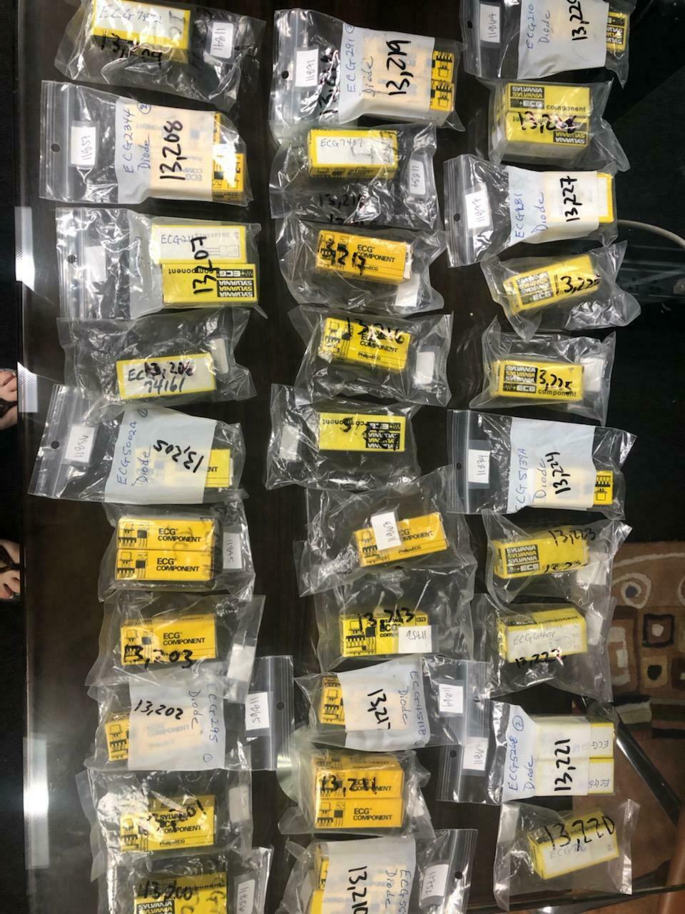 SYLVANIA ECG COMPONENT (LOT OF 37 UNITS ) —LIST BELOW NE COND # 13200-13229 13200 ECG74123 SYLVANIA ECG COMPONENT 1 NS COND 13201 ECG7474 SYLVANIA ECG COMPONENT 1 NS COND 13202 ECG295 SYLVANIA ECG COMPONENT 1 NS COND 13203 ECG488 SYLVANIA ECG COMPONENT 1 NS COND 13204 ECG9601 SYLVANIA ECG COMPONENT 1 NS COND 13205 ECG5002A SYLVANIA ECG COMPONENT 1 NS COND 13206 ECG74161 SYLVANIA ECG COMPONENT 1 NS COND 13207 ECG211 SYLVANIA ECG COMPONENT 2 NS COND 13208 ECG2344 SYLVANIA ECG COMPONENT 2 NS COND 13209 ECG7472 SYLVANIA ECG COMPONENT 1 NS COND 13210 ECG552 SYLVANIA ECG COMPONENT 2 NS COND 13211 ECG74H30 SYLVANIA ECG COMPONENT 2 NS COND 13212 ECG4511B SYLVANIA ECG COMPONENT 1 NS COND 13213 ECG724 SYLVANIA ECG COMPONENT 1 NS COND 13214 ECG990 SYLVANIA ECG COMPONENT 1 NS COND 13215 ECG74151 SYLVANIA ECG COMPONENT 1 NS COND 13216 ECG74157 SYLVANIA ECG COMPONENT 1 NS COND 13217 MC7812CT SYLVANIA ECG COMPONENT 1 NS COND 13218 ECG7407 SYLVANIA ECG COMPONENT 1 NS COND 13219 ECG291 SYLVANIA ECG COMPONENT 2 NS COND 13220 ECG736 SYLVANIA ECG COMPONENT 1 NS COND 13221 ECG5268 SYLVANIA ECG COMPONENT 2 NS COND 13222 ECG6401 SYLVANIA ECG COMPONENT 1 NS COND 13223 ECG5808 SYLVANIA ECG COMPONENT 1 NS COND 13224 ECG5137A SYLVANIA ECG COMPONENT 1 NS COND 13225 ECG777 SYLVANIA ECG COMPONENT 1 NS COND 13226 ECG611 SYLVANIA ECG COMPONENT 1 NS COND 13227 ECG281 SYLVANIA ECG COMPONENT 1 NS COND 13228 ECG613 SYLVANIA ECG COMPONENT 2 NS COND 13229 ECG210 SYLVANIA ECG COMPONENT 1 NS COND OVER 10 MILLION PARTS IN INVENTORYTRACKING NUMBERS WILL APPEAR THAT DAY ON THE EBAY SITE PRODUCTS MUST BE PAID IN FULL ANY INTERNATIONAL DUTY AND TAXES MUST BE PAID BY CUSTOMERAT TIME OF DELIVERY OF PRODUCTEbay Payments: You will be receiving a link to make your payment from “EBAY” shortly to the email on file with ebay. Products will ship after payment received. If for some reason you don’t see your invoice within 30 minutes of purchase, please check your SPAM BOX thank you for shopping at shop aviation store. Shopaviatonstore com 954 319 0936